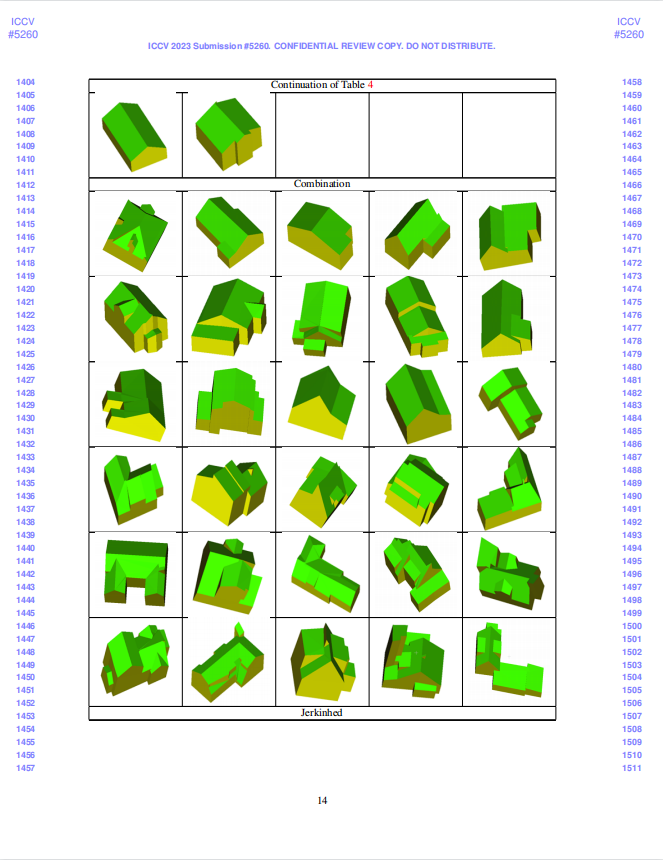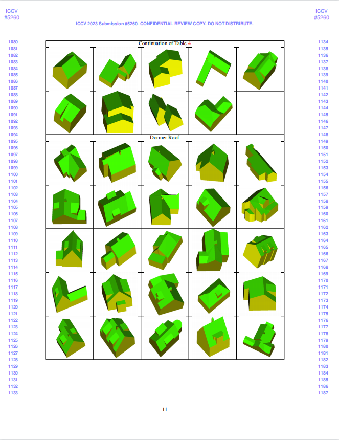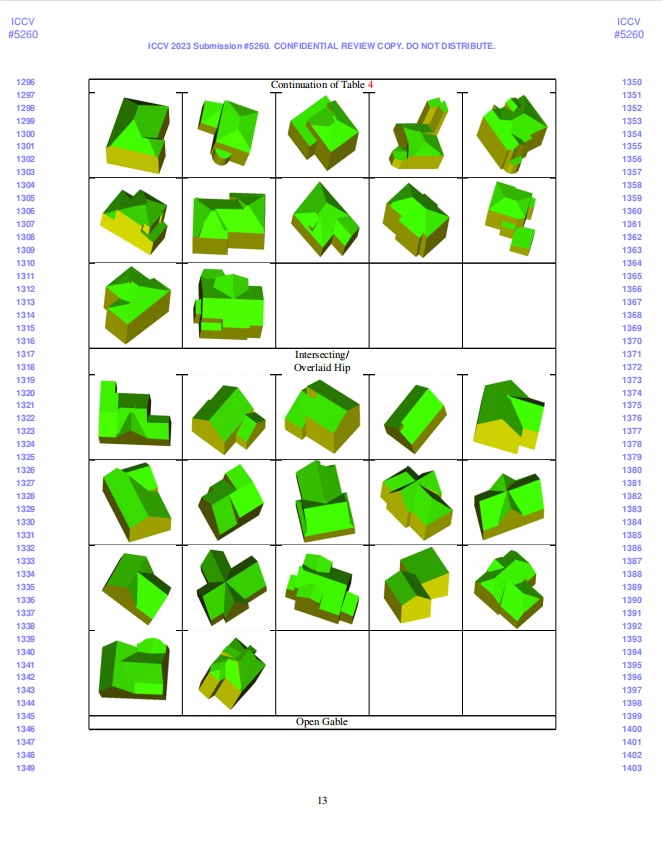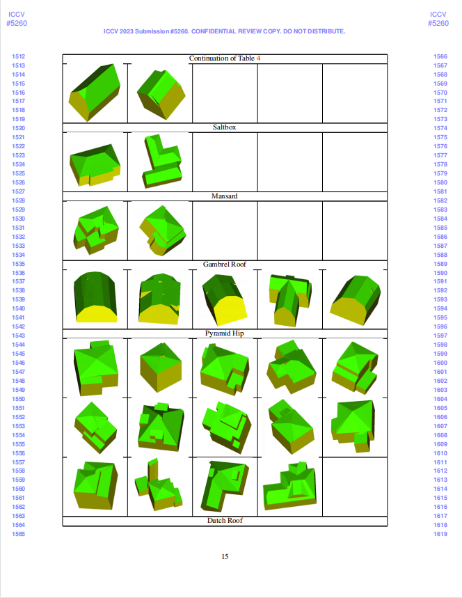 Building3D dataset has over 60 roof types. About ten frequently encountered roof types are shown below.